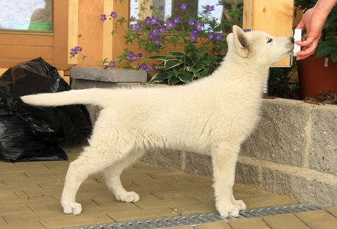 Bernie je fena silné kostry, vyššího vzrůstu, správného úhlení končetin, výborně utvářené a krásné hlavy, kvalitní bílé srsti, celoročně výborné pigmentace nosu i sliznic, ocas dobře nasazen i nesen. Je to povahově velmi vyrovnaná a přátelská fenka, rodinný pes, dobrý hlídač. K cizím lidem je poněkud zdrženlivější. Ve smečce BŠO je to Alfa fena.